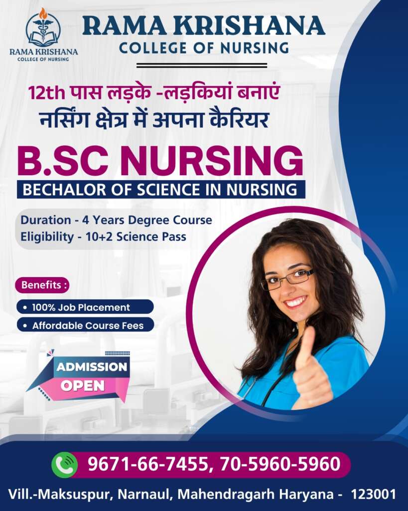 Rama and Krishna College of Nursing is the 1st preferred choice by students for pursuing BSc Nursing in Narnaul – Maksuspur. We provide regular classes for BSc Nursing students in our institute. We also facilitate online classes for BSc Nursing Students if required.